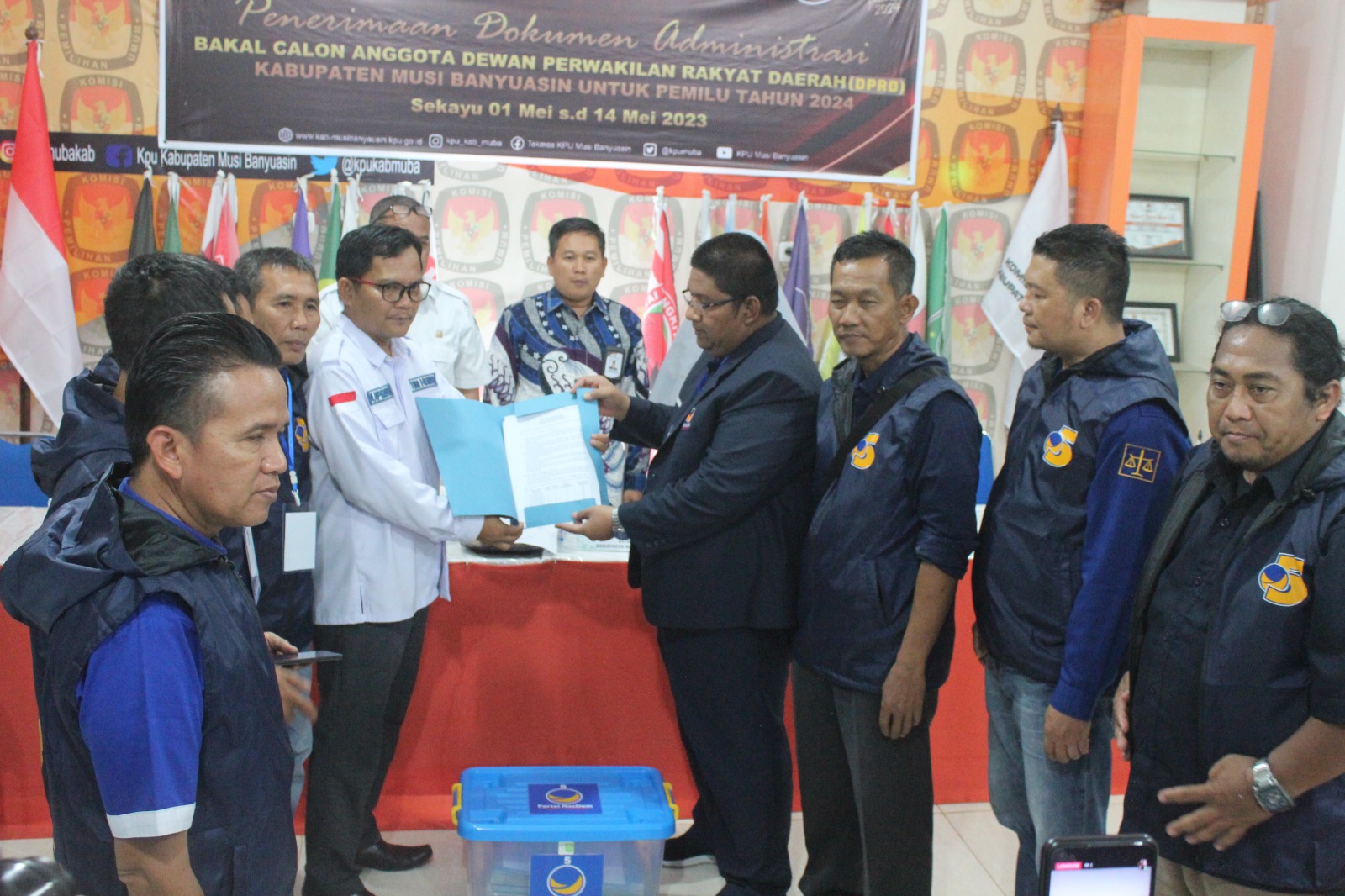 Sebagai informasi Ketua DPD Partai NasDem Muba didampingi Ketua Bapilu Abdul Kadir, Ketua OK Ebram, bendahara Ir. C Kawairus beserta jajaran pengurus lainnya mendaftarkan 100% dari total kursi DPRD Muba yaitu sebanyak 45 Bacaleg yang tersebar di 7 (tujuh) dapil yang ada di Kab. Musi Banyuasin dan dinyatakan status pendaftarannya DITERIMA dan LENGKAP.