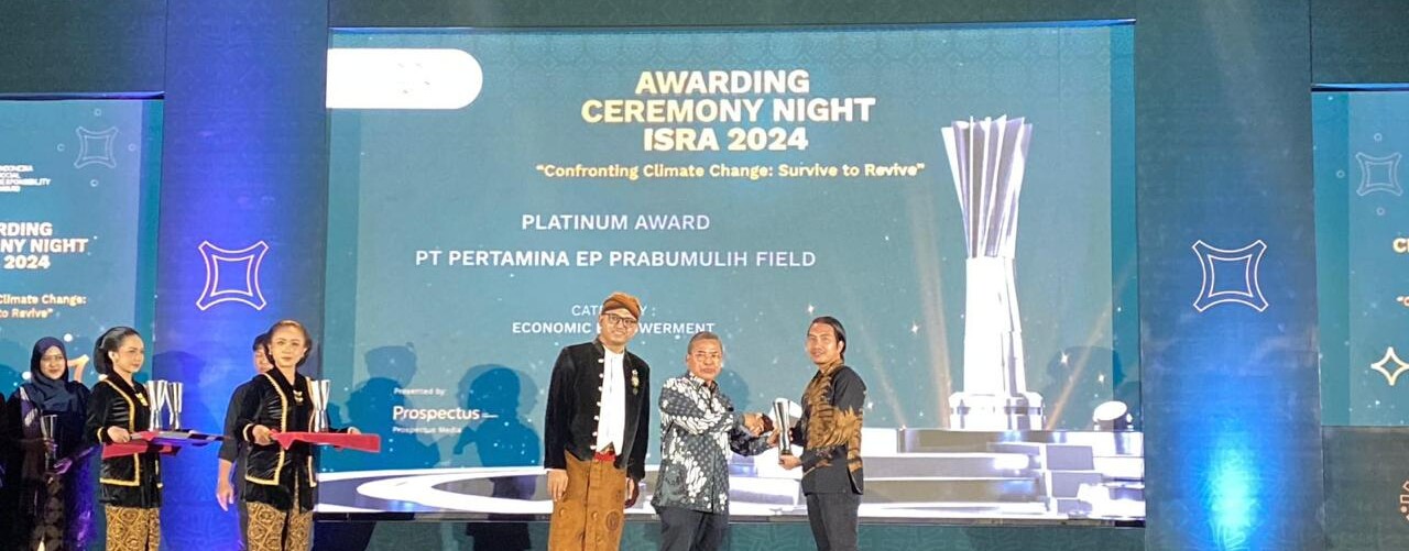 PT Pertamina EP Prabumulih Field meraih penghargaan platinum kategori economic empowerment (Pemberdayaan Ekonomi) dalam ajang Indonesia Social Responsibility Award (ISRA) 2nd tahun 2024 yang diselenggarakan di Grand Mercure Solo Baru, Sukoharjo, Jawa Tengah (27/06/24).