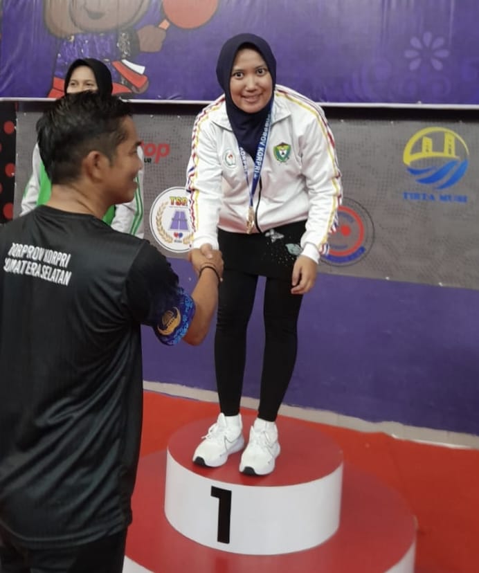 Dengan Kemenangan ini menjadikanya sebagai penyumbang mendali Emas pertama untuk kontigen kabupaten Muara Enim