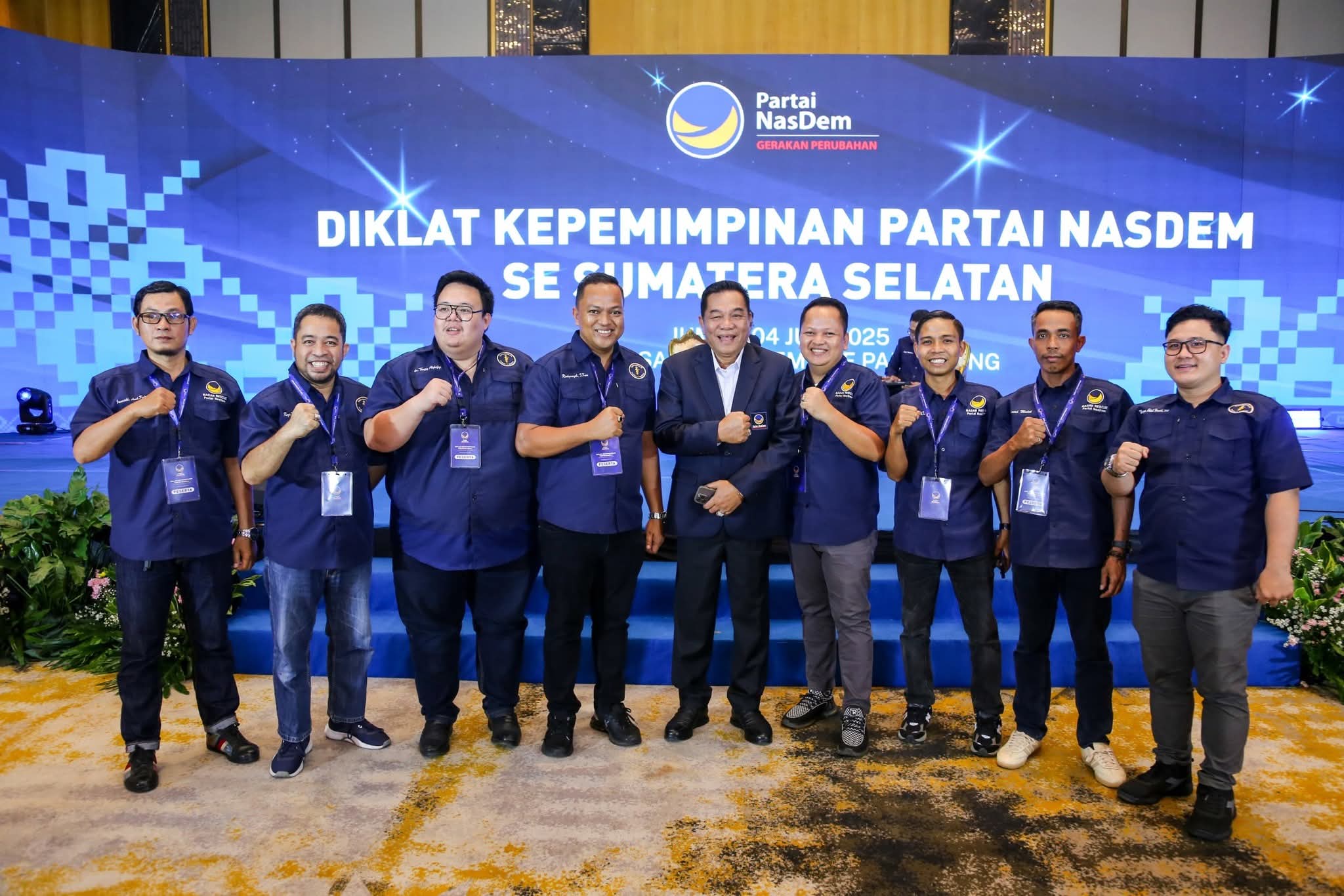 PPALEMBANG. LEMBAYUNGNEWS – Bupati Musi Banyuasin (Muba) H M Toha SH bersama sejumlah Anggota DPRD Kabupaten Muba dari Fraksi Partai NasDem menghadiri Pendidikan dan Pelatihan (Diklat) Kepemimpinan Partai NasDem se-Provinsi Sumatera Selatan. Kegiatan ini dilaksanakan di Hotel Santika Premiere Palembang pada Jumat, 4 Juli 2025.