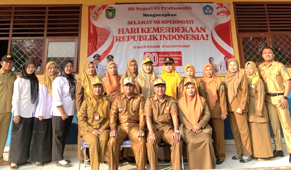PRABUMULIH, LEMBAYUNGNEWS – Suasana SD Negeri 65 Prabumulih di Desa Kemang Tanduk, Kecamatan Rambang Kapak Tengah, tampak berbeda pada Senin (11/8/2025). Kepala Desa Kemang Tanduk, Adi Darminto, A.Md, hadir sebagai pembina upacara bendera.