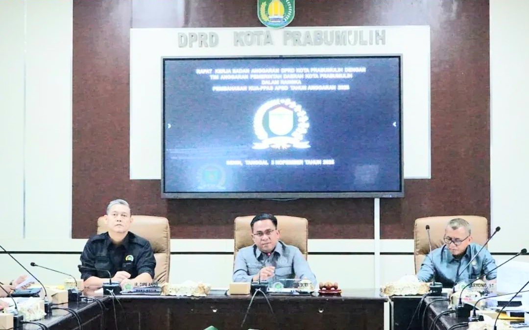 PRABUMULIH, LEMBAYUNGNEWS – Sekretaris Daerah Kota Prabumulih H. Elman, ST, MM menghadiri Rapat Kerja Badan Anggaran DPRD Kota Prabumulih bersama Tim Anggaran Pemerintah Daerah (TAPD) serta para Kepala Organisasi Perangkat Daerah (OPD) yang menjadi mitra kerja komisi, dalam rangka membahas Laporan Hasil Kerja Komisi-Komisi terhadap Pembahasan Kebijakan Umum Anggaran (KUA) dan Prioritas Plafon Anggaran Sementara (PPAS) Kota Prabumulih Tahun Anggaran 2026, Senin, 3/11/2025.
