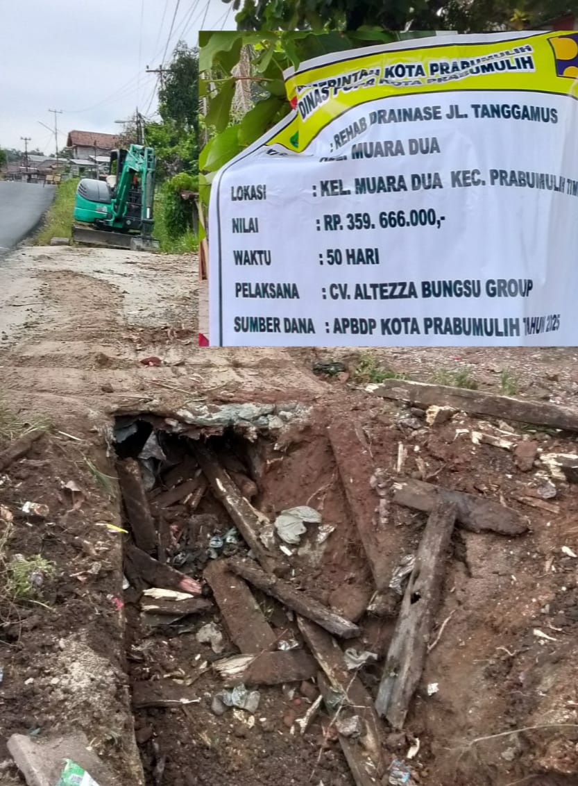 PRABUMULIH, LEMBAYUNGNEWS – Proyek rehabilitasi drainase di Jalan Tanggamus, Kelurahan Muara Dua, Kecamatan Prabumulih Timur, menuai sorotan warga. Pekerjaan yang bersumber dari APBD Kota Prabumulih Tahun 2025 dengan nilai kontrak mencapai Rp359,6 juta itu dinilai minim pengawasan dan terindikasi mengabaikan Standar Keselamatan dan Kesehatan Kerja (K3).